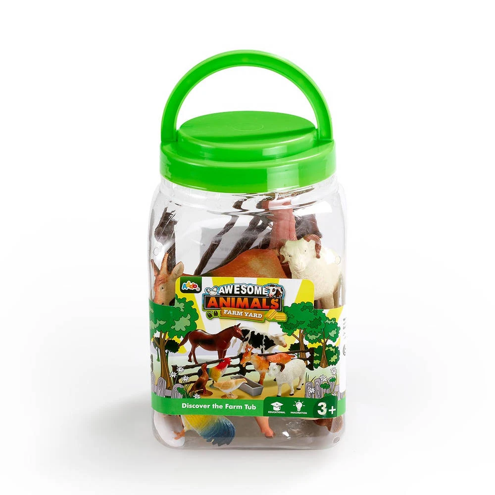 - e set bevat een varken, een paard, een koe, een geit, een ram, een kip, een haan, een kalkoen, een trog en twee hekken voor realistisch fantasierijk spel.