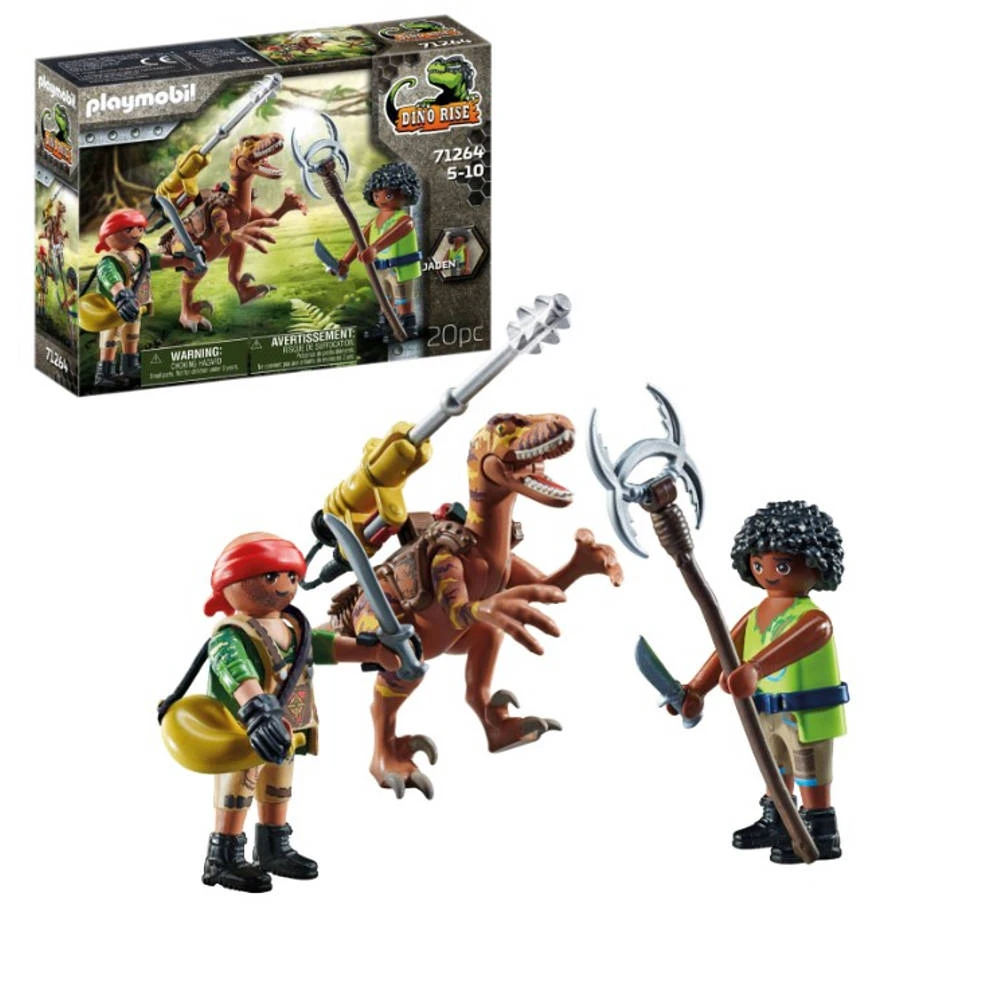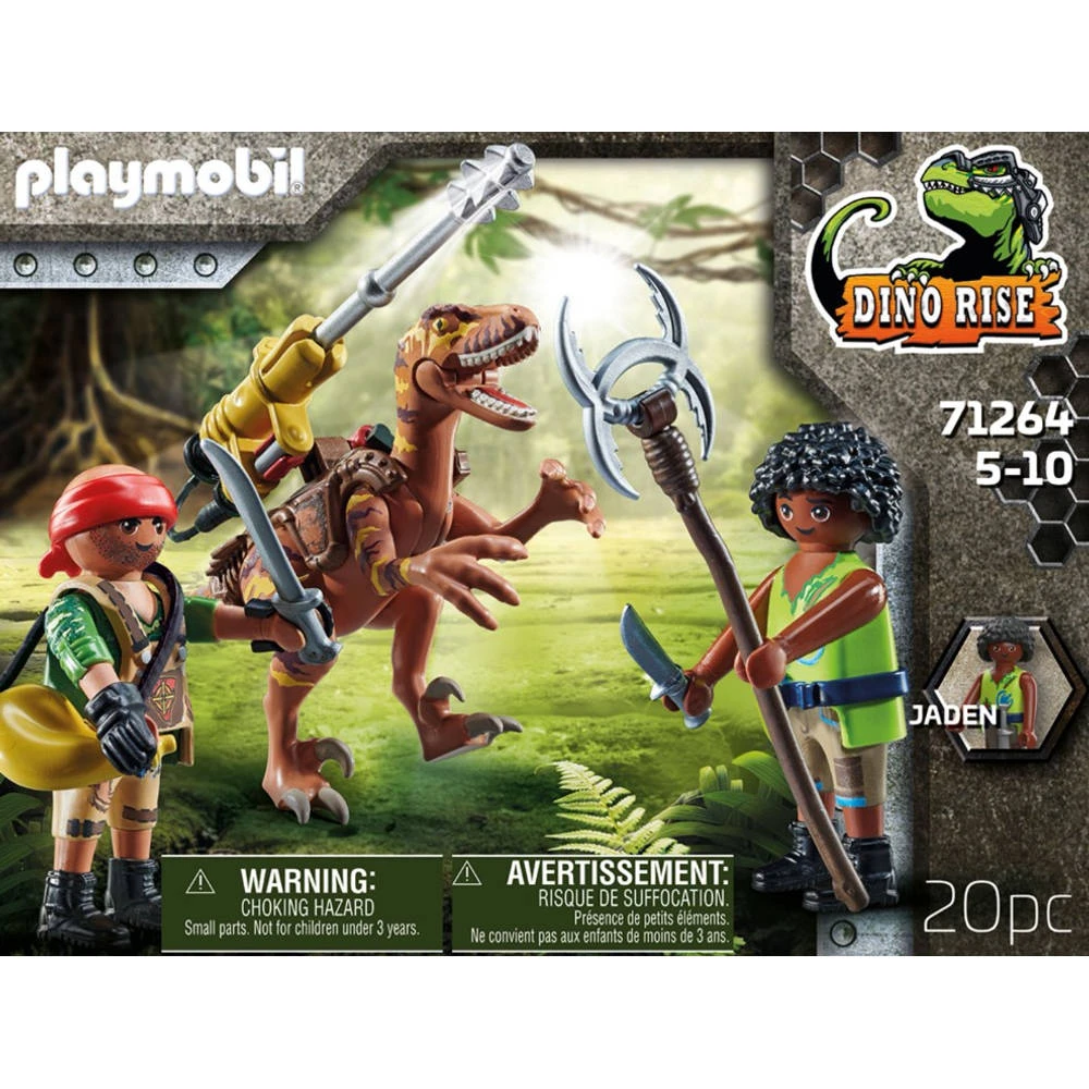Pas op! De tegenstander heeft een Deinonychus te pakken gekregen en uitgerust! Kan Jaden de dino helpen? Met een afneembaar, draaibaar kanon en inclusief 2 figuren. PLAYMOBIL-nr. 71264