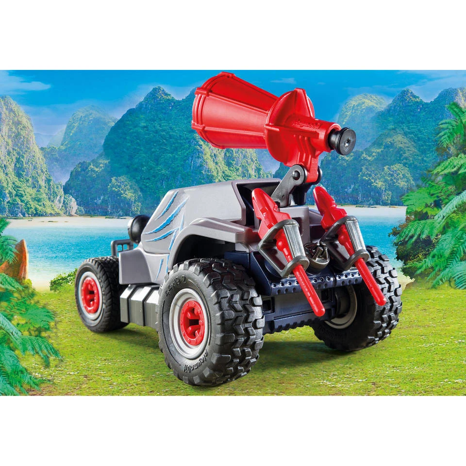 Bedenk je eigen spannende dino-avonturen met deze Playmobil Dinos offroad buggy met dinovangnet set. PLAYMOBIL-nr. 9434