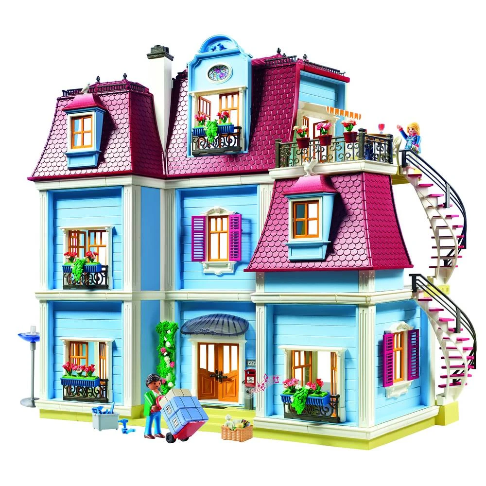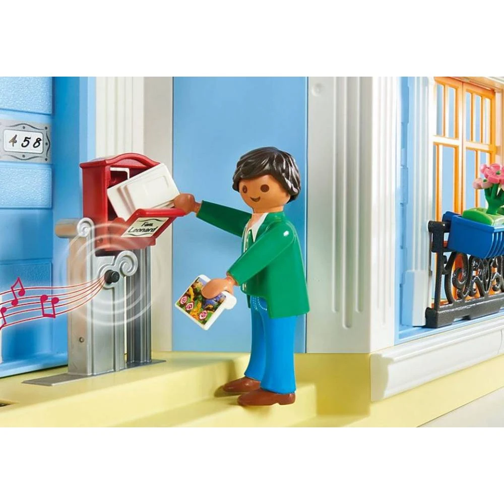 - ​De speelset bestaat uit twee Playmobil figuren, een herenhuis met plaats voor maximaal zes kamers en een dakterras met buitentrap, een functionele deurbel en een brievenbus om te openen en vele andere accessoires.