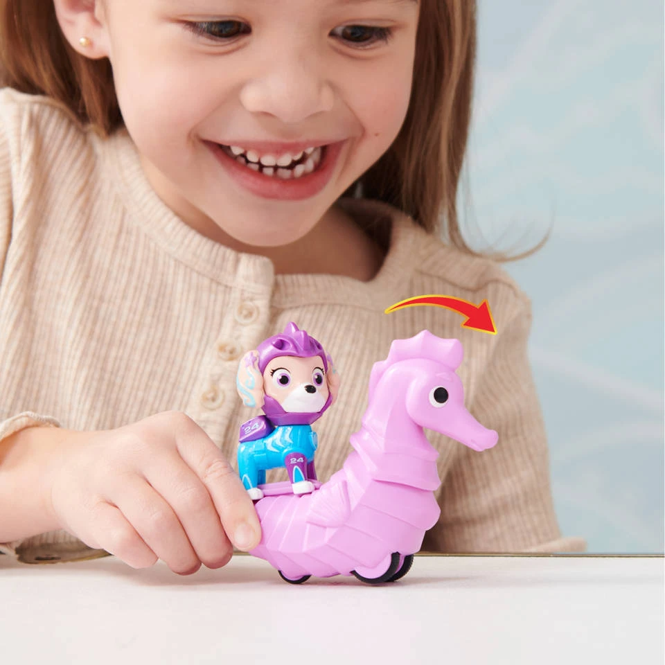 Deze actiefigurenset bestaat uit Coral, het nichtje dat Skye in geen jaren meer heeft gezien, met haar superschattige zeemeerminstaart en haar trouwe zeepaard-maatje. De nieuwste pup van PAW Patrol is klaar om in actie te komen.
