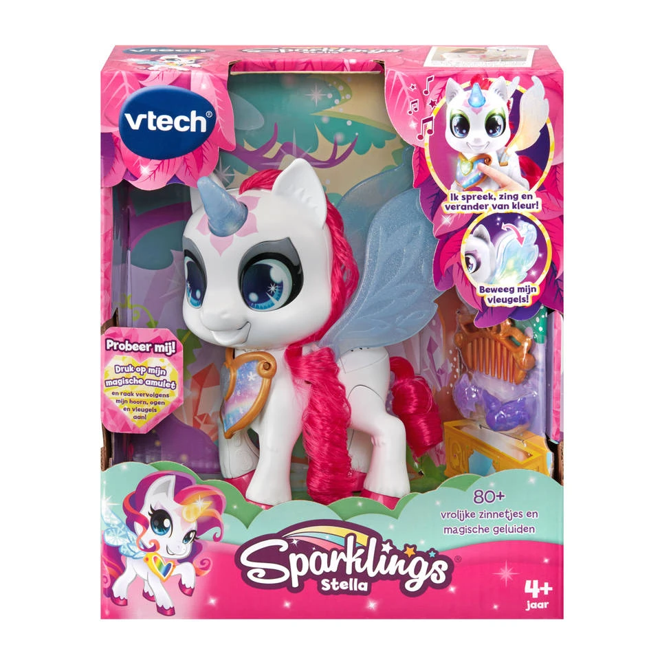 Met dit VTech Sparklings figuur Stella beleef je magisch speelplezier! Ze kan van kleur veranderen wanneer je haar kuif aanraakt. Ook kan dit schattige figuur haar staart bewegen en vrolijke zinnetjes zeggen. Er valt dus altijd wel wat te beleven met Stella.